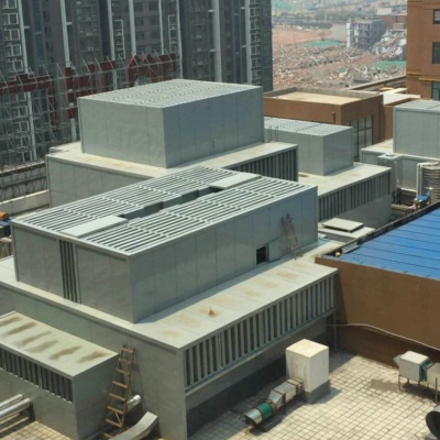 此類隔聲罩通常配備帶有大面積的進(jìn)風(fēng)百葉,在頂部風(fēng)機(jī)上方安裝排風(fēng)消聲器或消聲導(dǎo)風(fēng)筒,保證有足夠的進(jìn)風(fēng)量,既不能影響機(jī)組自身的進(jìn)風(fēng)需要,又可以滿足罩內(nèi)的通風(fēng)散熱。
