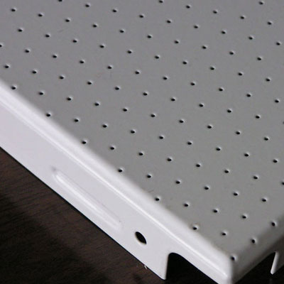 穿孔板一般板厚在0.8-10mm,孔徑2-15mm,穿孔率為0.5%-5%,主要用于組建穿孔板吸聲結(jié)構(gòu)。一般是在是在剛性壁面前的一定距離安裝一塊穿孔板,穿孔板連同板后的空間就形成了許多并連著的共鳴器,當(dāng)共鳴器的固有頻率與外界聲波頻率一致時發(fā)生共振,此時摩擦損耗最大,聲能消耗做多。