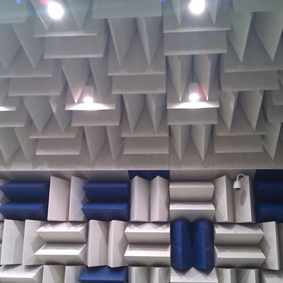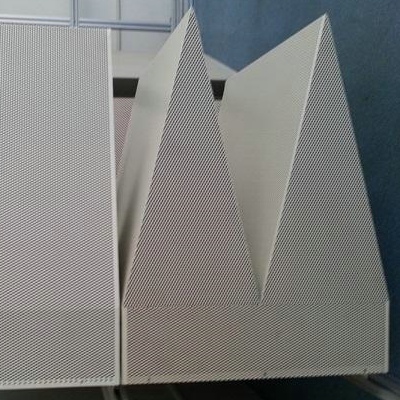 尖劈的吸聲原理是通過把多孔或纖維吸聲材料填充或者加工成尖劈狀吸聲體,實現(xiàn)特性阻抗逐漸過渡這一物理原理,在聲波入射時,材料的聲阻抗與空氣的聲阻抗相接近,聲波被高效吸收。 金屬尖劈主要是使用金屬穿孔板替代鋼絲骨架和紗網(wǎng)布。